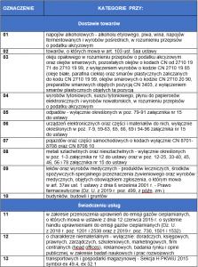 • Oraz aktualnej (obowiązującej od 1 kwietnia 2020 r.) Polskiej Klasyfikacji Wyrobów i Usług (PKWiU 2015) w zakresie usług.